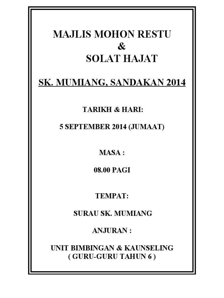 Kertas Kerja Solat Hajat 2017 Pdf
